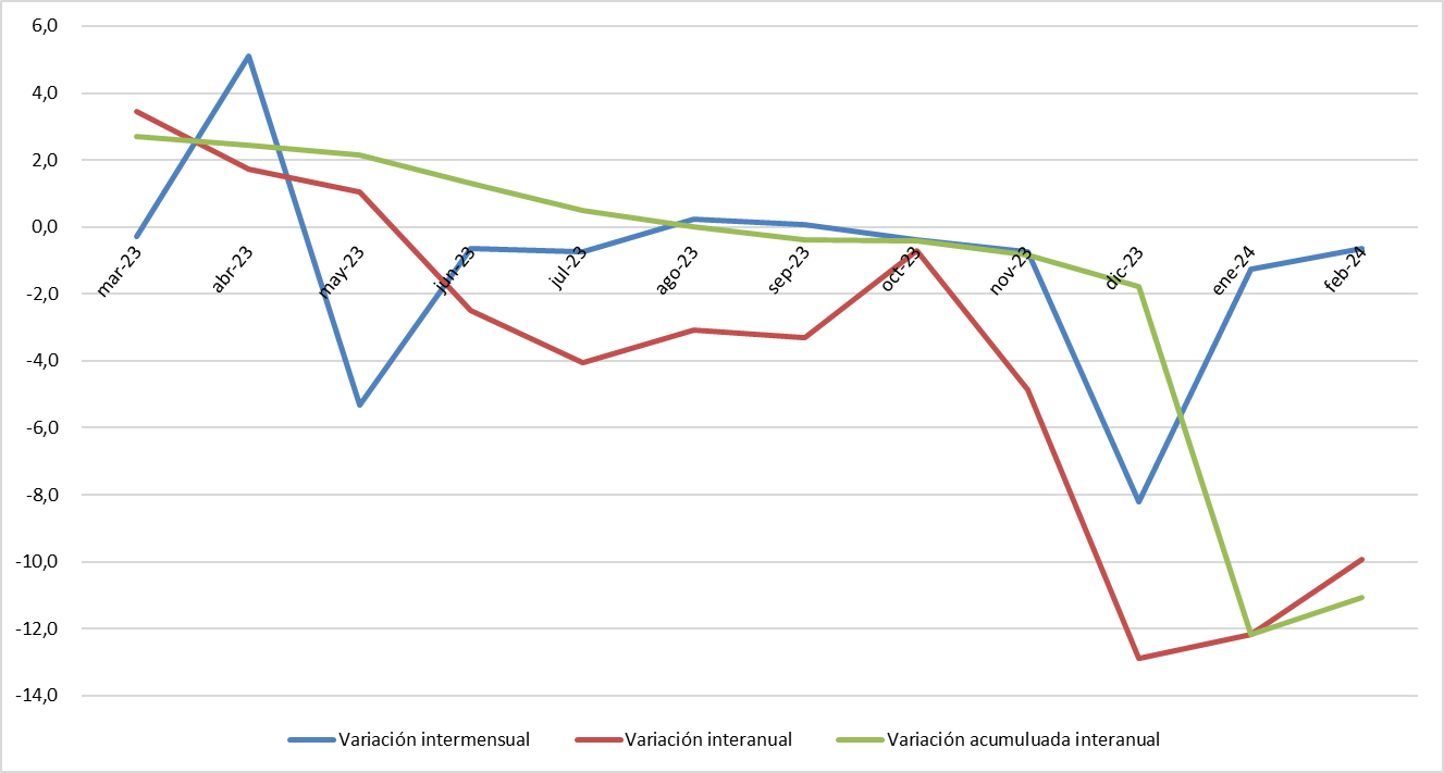 ●Las dos primeras medidas implican una flexibilización al acceso al Mercado Libre de Cambios (MLC) para las micro, pequeñas y medianas empresas. Al adecuar las normas a las prácticas habituales del comercio internacional, con esta medida esperan normalizar el flujo de importaciones para alrededor de 20 mil empresas, además de las 6.400 ya favorecidas con las medidas implementadas en febrero, que pudieron cancelar sus deudas por importaciones contraídas antes de que asumiera el gobierno. Esto es una buena noticia para las PyMEs, que tendrán una mejora en su previsibilidad y condiciones para el acceso a importaciones. ● También es evidencia de que el BCRA está conforme con el ritmo de acumulación de Reservas que logró hasta acá (que lo deja hoy prácticamente con Reservas Netas neutras) pero también con el flujo esperado de acumulación. En este último punto se conjugan el pago postergado de las importaciones de estos meses (que en monto equivale a la acumulación de Reservas brutas en el mismo lapso) y la liquidación de divisas por las exportaciones de cosecha gruesa. Incluso considerando que en los últimos años hubo incentivos extra “fuera de temporada” (“dólar soja” en septiembre o diciembre, por ejemplo), en el promedio de los últimos años el 42% de la cosecha gruesa se liquida en el cuatrimestre abril-julio. Incluso si el agro acumula en silobolsas una parte de esta cosecha a la espera de mejores precios internacionales, la liquidación necesaria para cumplir con los contratos ya firmados y continuar operando marca un piso de compra de Reservas que le alcanzará al BCRA para suplir esa demanda de importaciones. De hecho, permitirá que haya algo más de demanda, de manera que las cotizaciones del dólar dejen de caer. ● También hay una idea de derrame: las MiPyMEs explican la mayor cantidad de empresas (97,8% del total) y empleo (66% del empleo registrado). Por ende, este reacomodamiento y facilitación para la importación -particularmente para la formación bruta de capital- ayudará a su crecimiento y a la mayor demanda de empleo. Asimismo, el gobierno las propone como fuentes de “previsibilidad y eficiencia” para los pagos al exterior, lo cual debiera reducir los costos y eficientar las operaciones financieras para este tipo de empresas. Menores costos y mayor eficiencia deberían acompañar la baja de la inflación. ● Ahora bien, pese a los controles de cambio que aplicaban sobre las MiPyMEs hasta antes de estas medidas (y las de febrero), el nivel de actividad no estaba tan en caída como en los últimos meses. El Índice de producción industrial manufacturero mostró para febrero una caída intermensual de -0,7%, interanual de -9,9% y acumulada de -11,1%. | Índice de producción industrial manufacturero, últimos doce meses (mar-23 a feb-24). Variación intermensual, interanual y acumulada interanual | Fuente: Elaboración propia en base a INDEC. | ● No se habían visto niveles así de caída en los últimos cuatro años. Los niveles de merma interanual de febrero (-9,9% i.a.), enero (-12,2% i.a.) y diciembre (-12,9% i.a.) tienen sus antecedentes similares más recientes en la pandemia, que tuvo picos máximos de baja en marzo (-16,5% i.a.), abril (-33,2% i.a.) y mayo (-26,2% i.a.) de 2020. Lo mismo ocurre con el índice medido en variación interanual acumulada. ●El Estimador Mensual de la Actividad Económica (INDEC) arrojó en enero una baja en el nivel de actividad de -4,3% interanual y -1,2% intermensual. El Uso de la Capacidad Instalada está en niveles por debajo de la pandemia. ● Las MiPyMEs han expresado su situación de alerta por la caída de la demanda en el mercado interno, la desprotección de la industria local y el recién iniciado aumento gradual en las tarifas de los servicios públicos. Han empezado a generarse despidos y algunas empresas ya alertan por la posibilidad de cierres, de no revertirse la situación actual. ● En este contexto estas medidas de facilitación de la importación pueden ser insuficientes para estimular la actividad en las MiPyMEs si una fuente fundamental de su desempeño está cada vez más contraída: la demanda interna. ● Finalmente: el BCRA marca en su comunicado que pretende utilizar de acá en más la medición de la inflación núcleo como parámetro de referencia. En ese sentido es que se permite reducir nuevamente la tasa de interés para pases pasivos a 70% TNA, que equivale a 5,8% de Tasa Efectiva Mensual. Como el propio BCRA explicita, “en vista de los ajustes de tarifas reguladas de servicios públicos anunciados” la inflación total será mayor a ese número; pero apunta a una reducción de la núcleo que haga que la tasa real sea razonablemente negativa. Ahora bien: por un lado, esto no ocurrirá inmediatamente. Por el otro, la evolución futura de la inflación continúa dependiendo del sendero que el Gobierno trace para la unificación cambiaria, del cual aún no sabemos a ciencia cierta los tiempos, objetivos ni valores que Milei, Caputo y Bausili tienen en mente. ● En paralelo, el Tesoro logró licitar bonos por $ 2,92 billones -muy superior a los $ 460.000 millones que necesitaba renovar-. Ese excedente se destinará a comprar dólares al BCRA, a fin de pagar los próximos vencimientos de deuda. Pero además, por primera vez en la historia moderna, la cantidad de dinero colocada por el sector público en plazos fijos superó al monto de base monetaria. Es decir que en este momento es igual de relevante en términos monetarios el manejo de su flujo de fondos que haga el Tesoro, que la emisión que pueda hacer el BCRA. Esto también es consecuencia de la licuación acelerada de pasivos del BCRA; y obviamente, es un fenómeno circunstancial que se moderará cuando el Tesoro le entregue esos pesos al BCRA a cambio de los dólares de las Reservas | Datos actualizados de coyuntura | La tasa de interés de referencia se encuentra a partir de hoy y por primera vez en 