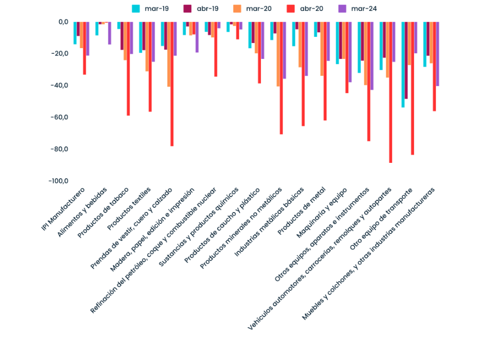 ¡Aprovechá esta oportunidad de potenciar tu marca y tus productos! ¡NO TE LA PIERDAS! Descargá el formulario de inscripción aquí: https://n9.cl/ud1fm3 O podés completar los datos en este formulario de Google: https://forms.gle/PEFwK9UF8PscjGjH9 | Coyuntura económica al 15 de mayo 2024 | Para la actividad económica, Clonazepam | ● La industria manufacturera alcanzó el décimo mes consecutivo de caída interanual, y el sexto de caída intermensual. Esta vez los números en rojo, además de mostrar una fuerte continuidad, ya permiten confirmar lo que venían indicando nuestros datos adelantados: la economía argentina pasó de un estado de recesión a uno de depresión. La caída interanual del sector en marzo fue de -21,2%, casi el doble que en diciembre (-12,8% i.a.), y la intermensual fue de -6,3%. | ● El mayor problema es que luego de muchos meses de caída, el ritmo de contracción se acelera fuertemente. Además, es homogénea entre sectores dentro de la industria manufacturera. Todos los sectores cayeron (por primera vez desde la pandemia): de los 16 sectores industriales, 5 redujeron su actividad más de 30% i.a. y 2 por encima del 40% i.a. Los únicos dos que se contrajeron menos de 10%: refinación del petróleo, coque y combustible nuclear (-4% i.a.) y sustancias y productos químicos (-4,8%). ● En el gráfico los sectores se ordenan de izquierda a derecha en función del mayor nivel de caída. Una lectura distraída podría interpretar que están ordenados desde menor a mayor generación de valor agregado, complejidad tecnológica o empleo. La coincidencia es dramática: los sectores de mayor caída interanual en la industria manufacturera son a la vez los sectores más complejos. En el extremo están maquinaria y equipo (-37,9% i.a.), muebles y colchones, y otras industrias manufactureras (-40,4% i.a.) y otros equipos, aparatos e infraestructura (-42,8% i.a.). ● En la subdivisión de muebles y colchones el número es aun más alarmante: la caída interanual es de -46,5%. Por encima de febrero, cuando cayó -40,6% i.a.. Es el segundo mes de mayor caída de toda la serie (2017-mar2024), solo superado por abril de 2020 (-71,6% i.a.). La caída acumulada en apenas tres meses de 2024 es de -39%. ● Antecedentes: existen solo 4 meses desde 2016 en el que cayeron todos los sectores del IPI en términos interanuales: marzo (-14,1% i.a.) y abril (-8,9% i.a.) de 2019, y marzo (-16,5% i.a.) y abril (-33,2% i.a.) de 2020. ● Como se puede observar, en muchas subclases la caída fue más acelerada en marzo de 2024 que en marzo y abril de 2019. En el caso de alimentos y bebidas, de hecho, la baja de mar-24 fue mayor incluso que en la pandemia. | IPI manufacturero nivel general y sectores (variación porcentual interanual). Meses de caída en todos los sectores. | Fuente: elaboración propia en base a INDEC. | ● La caída interanual tiene su antecedente más reciente en la pandemia: cayó -33,2% y -26,2% i.a. en abril y mayo de 2020 respectivamente. ●La baja en la producción industrial entre marzo y mayo de 2020 es comparable a la que este Gobierno alcanzó en los primeros tres meses de 2024 (-14,8% a.i. en marzo): así, en 2024 el nivel de actividad se derrumba prácticamente al mismo ritmo que en el inicio de la pandemia de COVID-19. ● La industria manufacturera ni siquiera es el sector productivo más golpeado: la actividad en la construcción la opaca, con una reducción de -42,2% i.a. y -14,2% i.m. en marzo. El sector acumula 5 meses de caída interanual (cada vez más profunda) y 8 meses de caída intermensual (donde pasó de -3,6% i.m. en febrero a -14,2% i.m. en marzo). Lógicamente, los puestos de trabajo en el sector se redujeron en 11,6% i.a. | MARCAS DE LUJO Y ESTILO ARGENTINO EN EL SALÓN DEL MUEBLE DE MILÁN | El Salón del Mobile de Milán, la cumbre mundial del diseño de interiores y mobiliario, llegó a su fin dejando una estela de innovación, creatividad y estilo. Del 5 al 10 de abril, Milán se convirtió en el epicentro donde convergieron las últimas tendencias, las marcas más prestigiosas y el talento más vanguardista del mundo del diseño. Podés leer el artículo completo aquí: https://n9.cl/0pgi4 | Si son parte de la cadena de valor del mueble, ya sea fabricante, proveedor o comerciante, te invitamos a sumarte al Instituto del Mueble Argentino. Como socios pueden acceder de manera exclusiva a todos estos beneficios: - Newsletter semanal con noticias sobre la coyuntura y el sector. Lo más importante a tener en cuenta para proyectar como empresa y como sector. Para estar al tanto de convocatorias públicas y privadas disponibles y también la oferta crediticia.