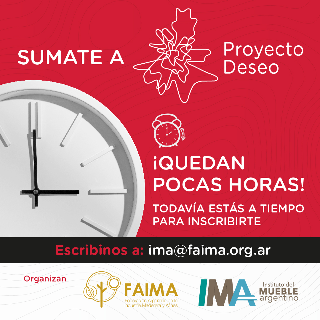 NÚMERO 13. 15 de mayo de 2024 | ¡En unas horas cierra la inscripción a Proyecto Deseo! ¿De qué se trata esta iniciativa organizada por IMA y FAIMA? En Proyecto Deseo te conectamos con un diseñador profesional o estudio para desarrollar el mejor prototipo posible. - Vas a tener el asesoramiento de IMA y FAIMA durante el desarrollo de tu prototipo.