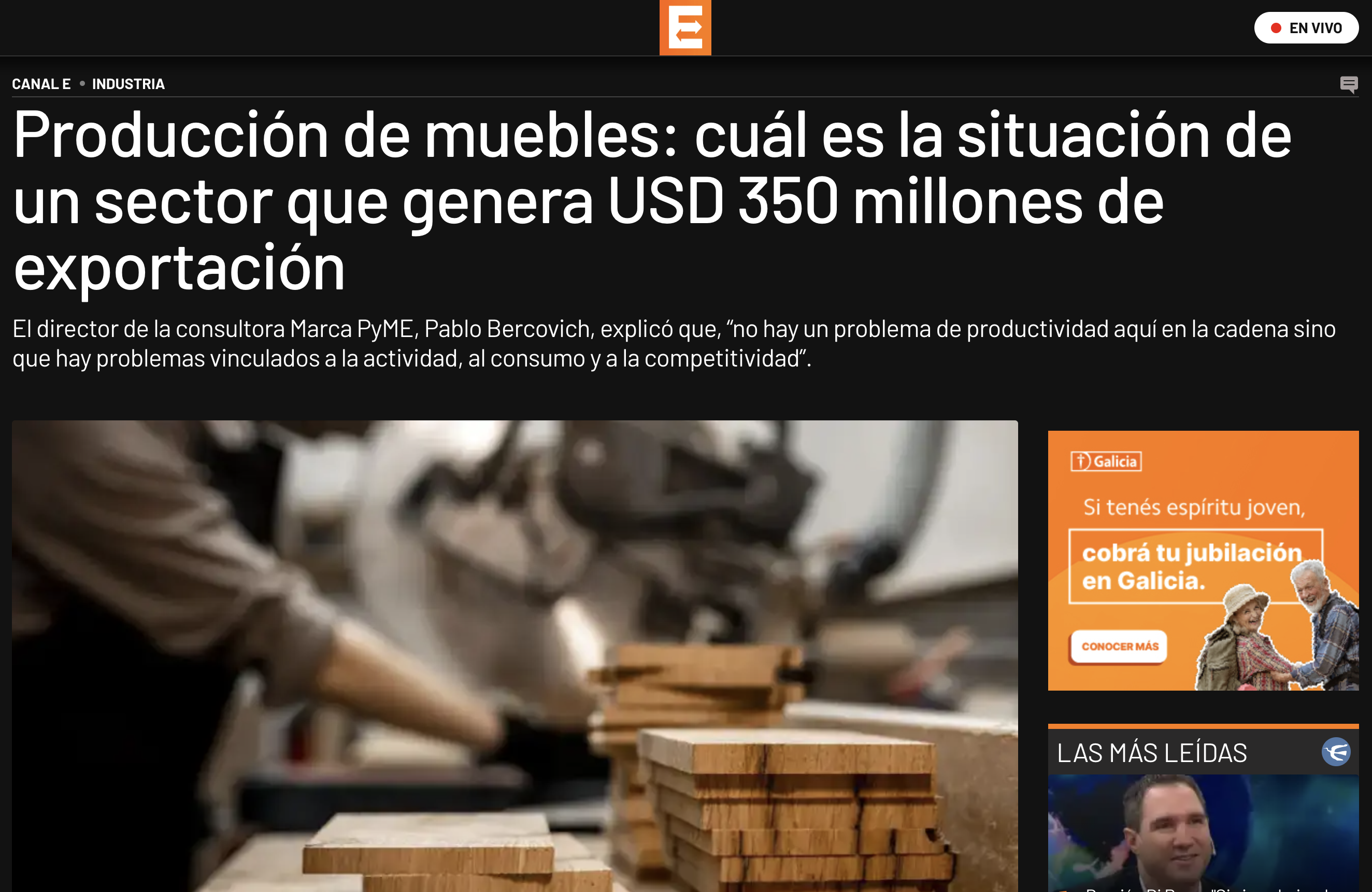 ¡Esperamos tu visita! | INFORME DE COYUNTURA ECONÓMICA Y POLÍTICA | Economía 2024: balance mixto para este fin de año | ●La evolución del PBI rompió con una (mala) racha de tres meses consecutivos de caída intertrimestral: se elevó +3,9% i.t. en el 3° trimestre de 2024 en comparación con el segundo. Lo más importante: excepto por importaciones (que evolucionaron de manera positiva pero restan al PBI), todos los componentes de la demanda contribuyeron a esa evolución positiva intertrimestral: subieron tanto el consumo privado (+3,9% i.t.) como el público (+0,7% i.t.), las exportaciones se incrementaron +3,2% i.t.. y las inversiones +12% i.t. ● Sigue siendo alarmante la situación de la construcción (-14,9% i.a.), comercio (-6,1% i.a.) e industria manufacturera (-5,9% i.a.). En ese sentido, cada uno con una incidencia negativa de -0,49 p.p., -0,83 p.p. y -1 p.p., contribuyeron a la evolución interanual negativa del nivel de actividad. La evolución del PBI en el 3er trimestre fue -2,1% i.a., principalmente traccionada por la caída de la inversión (-16,8% i.a.). El consumo también cayó (-3,2% i.a. el privado y -4% i.a. el público), a la vez que las exportaciones (+20,1% i.a.) y las importaciones (-11,7% i.a.) amortiguaron la caída. ● Desde luego, esto explica en gran parte la caída de las ventas del sector mueblero en el primer semestre del año, como hemos estudiado durante todo el año en este espacio. Asimismo, el segundo semestre de Milei se proyecta como menos negativo, e incluso de recuperación según sea el mes. ● El Estimador mensual de actividad económica (EMAE), por su parte, acumula 6 meses de evolución intermensual positiva, y otros tres de desaceleración de la tasa de caída interanual. En octubre mostró una mejora de +0,6% i.m. respecto de septiembre, y la tasa de variación interanual se redujo a -0,7% i.a. ● Aumentaron la ocupación y los ingresos laborales, especialmente entre los hogares encabezados por trabajadores/as asalariados/as con descuento jubilatorio y aquellos con múltiples perceptores de ingresos. La tasa de empleo creció levemente al 45%, mientras que la desocupación se ubicó en 6,9% en el tercer trimestre. La tasa de desocupación subió +1,2 p.p. a nivel interanual, y su descenso intertrimestral (-0,7 p.p.) debe tomarse con cautela por el componente estacional. El año pasado, por ejemplo, la baja entre el 2do y 3er trimestre fue de -0,5 p.p. (de 6,2% a 5,7%). ● El ingreso medio per cápita familiar alcanzó los $414.785, con mucha heterogeneidad entre estratos. Los hogares en los deciles más bajos de ingresos percibieron un peso mayor de transferencias no laborales (jubilaciones, subsidios y otras ayudas), que habían sufrido bruscas reducciones en el primer semestre del año y que en la segunda mitad están recuperándose en términos reales (AUH) o al menos dejaron de perder contra la inflación (jubilaciones). La desaceleración de la inflación en los últimos meses permitió que los ingresos reales de los hogares más vulnerables crecieran marginalmente, por ejemplo entre quienes cobran una jubilación mínima. ● Asimismo, los hogares con jefes o jefas de hogar que lograron mantener ocupaciones formales o aumentaron su intensidad laboral (ya sea por más horas trabajadas o por empleos adicionales) experimentaron las mejoras más significativas. Respecto de la brecha de ingresos entre asalariados con y sin descuento jubilatorio, esta se mantuvo, pero ambos grupos vieron incrementos interanuales significativos en sus ingresos, con $810.560 para los primeros y $334.819 para los segundos de ingresos promedio. También está la cuestión estacional del aguinaldo: impactó positivamente en los deciles medios y bajos, mejorando su capacidad de consumo en el tercer trimestre. ●Pese a todo lo anterior, persisten las transformaciones y signos de precariedad en el mercado de trabajo y desigualdades importantes en la distribución de ingresos, con un coeficiente de Gini de 0,435 en el tercer trimestre, prácticamente estable en términos interanuales. La subocupación subió +1,1 p.p. interanual, a la vez que, dentro de ese grupo, subió la subocupación demandante (+1,3 p.p. i.a.) y cayó la subocupación no demandante (-0,2 p.p. i.a.). También se incrementó en +2,4 p.p. la tasa de ocupados demandantes de empleo (a 17,6%). ● Todo esto da cuenta de una población activa que desea trabajar más o trasladarse a otros empleos, muy probablemente en la búsqueda de mejores ingresos, en un contexto de fuerte deterioro pese a la recuperación de los últimos meses: en el 3er trimestre el ingreso medio entre las personas con ingresos fue de $649.163. La tasa de informalidad entre los/as asalariados/as es de 36,7%. ● Esto es parte de la actual etapa del capitalismo argentino: el desempleo está aumentando menos que en otras épocas porque buena parte de los trabajadores que pierden su puesto, tanto en el sector público como en el privado, se convierte en cuentapropista - emprendedor, monotributista, changarín y todas sus variantes -. | Análisis de la situación del sector mueblero por Pablo Bercovich | Compartimos con uds. esta nota de Canal E del Diario Perfil sobre "la situación de un sector que genera USD 350 millones de exportación". Como sostiene nuestro gerente y director de la consultora Marca PYME “no hay un problema de productividad aquí en la cadena sino que hay problemas vinculados a la actividad, al consumo y a la competitividad”. Los invitamos a acceder a la nota completa equí: https://tinyurl.com/yf37ey43 | ASOCIATE Y APROVECHÁ ESTOS BENEFICIOS Y DESCUENTOS | ¡HACETE SOCIO YA! NO DEJES PASAR ESTOS BENEFICIOS Y DESCUENTOS PARA SOCIOS. En principio, tenemos descuentos del 30% en: - Rediseño de imagen de marca y comunicación estratégica.