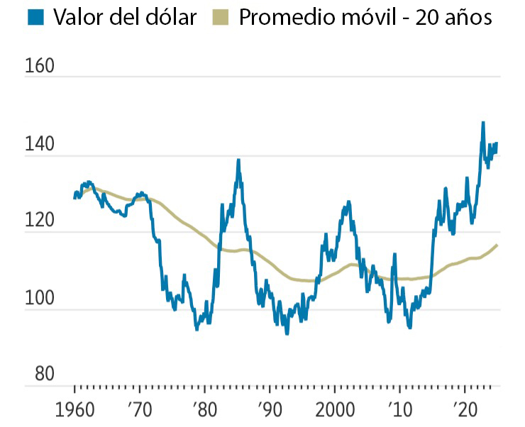 NÚMERO 50. 29 de enero de 2025 | INFORME DE COYUNTURA ECONÓMICA Y POLÍTICA | El gobierno recorta retenciones y se ajusta el superávit fiscal | ● La política actual de apreciación cambiaria tiene sus limitaciones: a medida que la apreciación se hace mayor (en términos reales) y la percepción comienza a ser que está “demasiado barato” (y por ende, que en el futuro requerirá una devaluación), se necesitan inyectar más dólares para que se mantenga en esos niveles. ●Una fuente importante de dólares son las exportaciones, fundamentalmente las agroganaderas. Ahora bien, la apreciación cambiaria excesiva le baja competitividad a toda la economía; incluso al campo, sector históricamente de alta productividad (y que por ende era competitivo incluso en épocas de tipo de cambio apreciado, como la Convertibilidad), pero cuyo ingreso en pesos relativo a los dólares que exporta implica en el último año ganancias en pesos que pierden contra la inflación de los costos. Eso, desde luego, desincentiva las exportaciones. ● De hecho, a la mirada rápida de “el dólar está barato” debe añadirse que el dólar se fortaleció frente a las demás divisas del mundo a fines de 2024, empujado por las expectativas de políticas proteccionistas de Trump. Pese a que en este inicio de 2025 retrocedió levemente, hoy el dólar está 7% por encima de su valor de septiembre de 2024 (comparado contra una canasta de las monedas de sus principales socios comerciales). Para la divisa estadounidense, de hecho, el Bank of America estimó la última semana que se encuentra un 20% sobre-apreciada respecto de un tipo de cambio “de equilibrio”. | Nota: muestra la tasa real de cambio, que mide el dólar estadounidense contra una canasta de monedas similares, ajustada por inflación. Fuente: BofA Global Research, Bruegel. | ● Así, la apreciación del tipo de cambio argentino se potencia por el fortalecimiento del dólar. Por ende, la competencia por precio contra, por ejemplo, Brasil (país en el cual el tipo de cambio se devaluó persistentemente en el último año) es cada vez más difícil. ● Si bien las exportaciones agropecuarias no venían mal (subieron +32,6% i.a. las exportaciones de productos primarios y +36,7% i.a. las manufacturas de origen agropecuario en dic-24), es una política de “cobertura” para el gobierno para los próximos meses, que se anticipó a eventuales stockeos de los exportadores a la espera de algún incentivo (devaluación o baja de retenciones). ● Según estimaciones del Consejo Agroalimentario Argentino (CAA), en 2025 las exportaciones agroindustriales se reducirían en USD 710 millones respecto de 2024 y totalizarían USD 44.800 millones. De ese total, USD 29.700 millones son cereales y oleaginosas (USD 1.400 millones menos que en 2024, por la baja en los precios internacionales); USD 11.200 millones son productos regionales (aumentando levemente); y USD 4.000 millones son carne (creciendo un 10%). Como suele ocurrir por la estacionalidad en la cosecha, el grueso de las ventas al extranjero se producirían entre marzo y agosto. ● Bajo este panorama, demostrando otra vez su inflexibilidad en la política de tipo de cambio como ancla cambiaria, el Gobierno decidió reducir derechos a la exportación agropecuaria y de economías regionales. La nueva medida es temporal: se implementará desde el 27 de febrero hasta finales de junio. ● Los productos con cambio temporal en las alícuotas son: - La soja pasa de 33% a 26%.