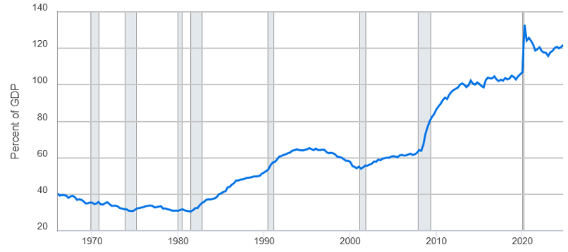 NÚMERO 58. 26 de marzo de 2025 | INFORME DE COYUNTURA ECONÓMICA Y POLÍTICA | Estados Unidos y su impacto en Argentina: la segunda presidencia de Donald Trump | La segunda asunción de Donald Trump como Presidente de Estados Unidos se produce en un contexto de desaceleración productiva y alta volatilidad financiera. En los últimos años, la moderada recuperación post-COVID-19 de su economía había encontrado límites estructurales - entre ellos la desaceleración de la productividad, la desigualdad de ingresos y la persistencia de déficits comerciales -, en un mundo donde China lo ha superado en materia de innovación tecnológica y escala productiva. Ya no se trata de que las empresas de mayor tamaño aumentan su productividad y las PyMEs quedan rezagadas, como ocurrió entre 1987 y 2007 en Estados Unidos. Desde 2010, hay una crisis estructural en la capacidad de innovación y dinamismo de la economía estadounidense, que se evidencia en que cualquier medición de productividad arroja una clara ralentización. La situación fiscal también era compleja. Tras años de expansiones presupuestarias que buscaban estimular el crecimiento y mitigar los efectos de la pandemia, el déficit fiscal alcanzó niveles significativos y limitó el margen de maniobra para nuevas intervenciones. No casualmente, la deuda pública se encuentra en niveles récords históricos desde la salida de la pandemia; y fue durante la campaña electoral un foco del debate sobre la economía estadounidense a mediano y largo plazo. | Estados Unidos: deuda pública total como porcentaje del PIB | Fuente: Federal Reserve Bank of St. Louis; U.S. Office of Management and Budget vía FRED. | En ese marco, el lapso entre la elección presidencial y el inicio de su nuevo mandato fueron sintomáticos de la falta de dinamismo. Ante las dudas sobre qué políticas económicas implementaría Trump, tanto consumidores como empresas (en particular PyMEs) adoptaron un comportamiento más cauto en sus decisiones de inversión y consumo, lo cual derivó en un menor ritmo de crecimiento de la economía y en mermas en las confianzas empresarial y de los consumidores. Al asumir en enero de 2025, Trump inmediatamente puso en marcha una serie de medidas económicas con un claro sesgo nacionalista y proteccionista. Sus objetivos declarados eran la reducción del déficit comercial, la repatriación de industrias y la protección de sectores estratégicos. Sin embargo, la implementación errática y la falta de una estrategia coherente y transparente incrementaron la incertidumbre en torno a sus impactos. Uno de los ejes centrales de su estrategia fue la imposición de aranceles a importaciones de China, México, Canadá y la Unión Europea, en un intento por reducir el déficit comercial y fomentar la producción interna. La lógica detrás de estos aumentos tributarios varió según el momento, el producto y el país: Trump justificó que serviría para frenar el ingreso de drogas ilegales, proteger la industria estadounidense (aluminio, acero y automotriz como casos principales) y hasta sostener las ganancias de las grandes empresas tecnológicas de su país (las Big Tech) reduciendo la competencia de “servicios digitales” importados. Pero las represalias comerciales de esos países encarecieron insumos clave para la industria estadounidense. El propio Trump tuvo que admitir que los aranceles podrían llevar en el corto plazo a una contracción económica, aunque mantuvo su postura de los beneficios que traería en el futuro. Por eso, de no mediar un nuevo cambio o negociación, el 2 de abril entrarán en vigor los "aranceles recíprocos" a los productos y bienes importados por Estados Unidos desde esos países. A la par, la administración de Trump también avanzó en la desregulación económica y la reducción de impuestos a las empresas, con la esperanza de incentivar la inversión y la creación de empleo. En esta meta tiene como funcionario clave a Elon Musk, la persona más rica del planeta y que en los últimos años viró hacia posturas de extrema derecha en distintos debates públicos. Hasta el momento, las desregulaciones que Musk logró llevar adelante tuvieron como principales beneficiarios a las grandes corporaciones y al segmento de la población de mayores ingresos, profundizando las desigualdades económicas. Por otro lado, la volatilidad financiera alcanzó niveles alarmantes en los primeros meses del nuevo gobierno. Las medidas proteccionistas y los cambios en la política monetaria generaron una caída marcada en los precios de las acciones y los diferenciales de precios entre bonos dan cuenta de que la posibilidad de una recesión económica es moderada pero significativa. Efectivamente, la combinación de aranceles a las importaciones, despidos en el sector público (que en lugares como la capital, Washington, están elevando rápidamente la tasa de desempleo), el recorte de subsidios en general (para Ciencia y Tecnología en particular, pero también en materia educativa, ambiental y de políticas sociales) y las restricciones a la inmigración son problemas para el aumento de la actividad económica en el corto plazo. En ese contexto, por ejemplo Goldman Sachs redujo su proyección de crecimiento anual del PBI del 2,4% al 1,7% ante la expectativa de una contracción inicial – y una recuperación posterior que sostenga a nivel anual esa tasa de crecimiento -. Nuestras proyecciones apuntan a un crecimiento durante 2025 en torno al 1%, aunque este número depende de manera crucial de las políticas económicas que continúe implementando Trump. Una de las variables clave para seguir este año será el consumo masivo. Un dato: el Director Ejecutivo de Walmart dijo en una entrevista a fines de febrero que las familias de menores ingresos estaban comprando menos en los últimos días de cada mes, como clara señal de que tienen más complicado el llegar a fin de mes con sus salarios actuales. Algo similar pla