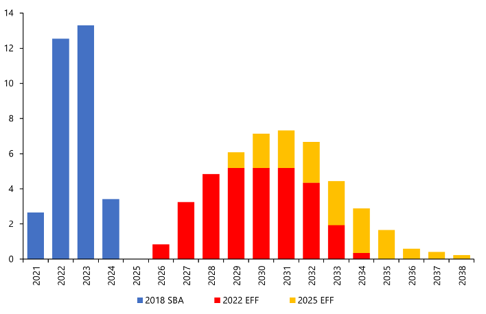 | Argentina: vencimientos con el FMI, por programa (en miles de millones de DEG) |