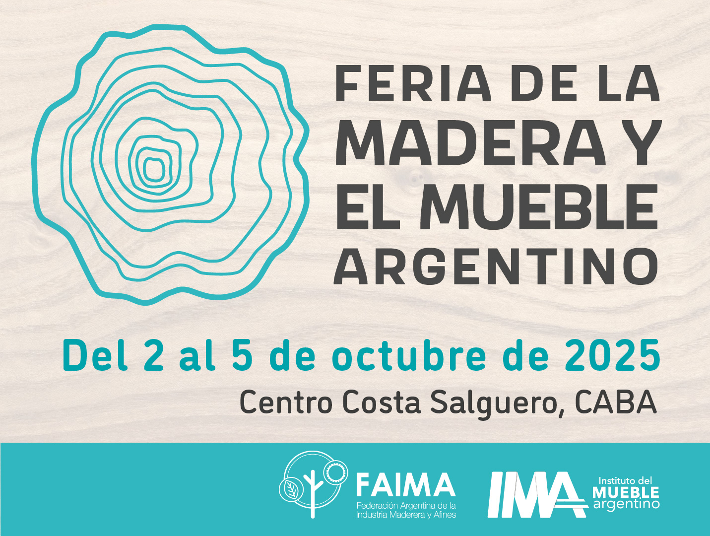 | Del 2 al 5 de octubre próximos en el Centro Costa Salguero de la Ciudad Autónoma de Buenos Aires tendrá lugar la primera edición de la Feria de la Madera y el Mueble Argentino, organizada por la Federación Argentina de la Industria Maderera y Afines (FAIMA) y el Instituto del Mueble Argentino (IMA). La Feria de la Madera y el Mueble argentino es una iniciativa que busca visibilizar y comercializar