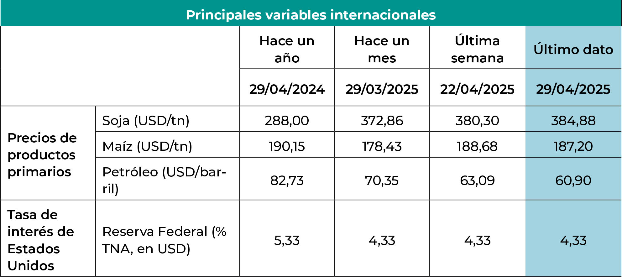 situándose en USD 187,20 por tonelada. Tanto la oferta como la demanda globales se mantienen estables, con condiciones climáticas favorables en las principales regiones productoras y sin interrupciones en la cadena de suministro. La evolución de la guerra comercial entre las dos grandes potencias mundiales podría influir en la dinámica de precios en las próximas semanas. El precio del petróleo continuó su tendencia descendente, ubicándose en USD 60,90 por barril.